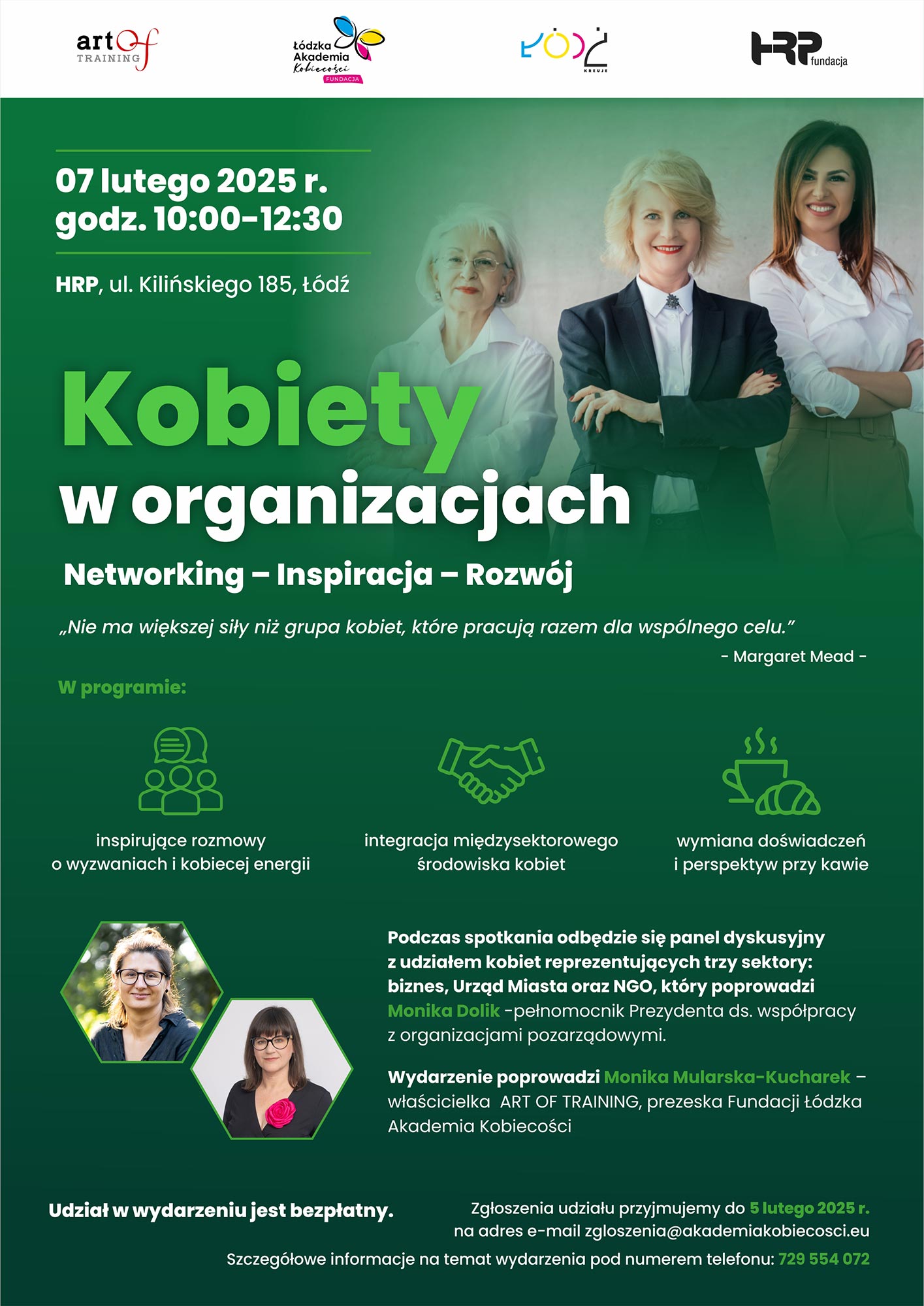 Prowadzenie: Monika Dolik – Pełnomocnik Prezydenta ds. współpracy z organizacjami pozarządowymi i Monika Mularska-Kucharek – właścicielka ART OF TRAINING,